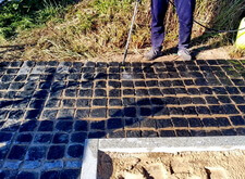 Приступив к работе, мы, первым делом, очистили могилу от травы. Затем положили по периметру места захоронения пятисантиметровую металлическую полосу, которая будет служить границей и дополнительной опорой брусчатке. Получившийся прямоугольник свариваем по углам.