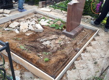 Изначально на участке был установлен красный памятник из гранита и гранитный же цоколь. Обращаясь к нам, клиент упомянул о частой проблеме: территория участка постоянно зарастает сорняками и поддерживать могилу к хорошем ему не представляется возможным. Коме травы на самом участке, внешний вид места захоронения портила также начинающая прорастать бетонная плитка.